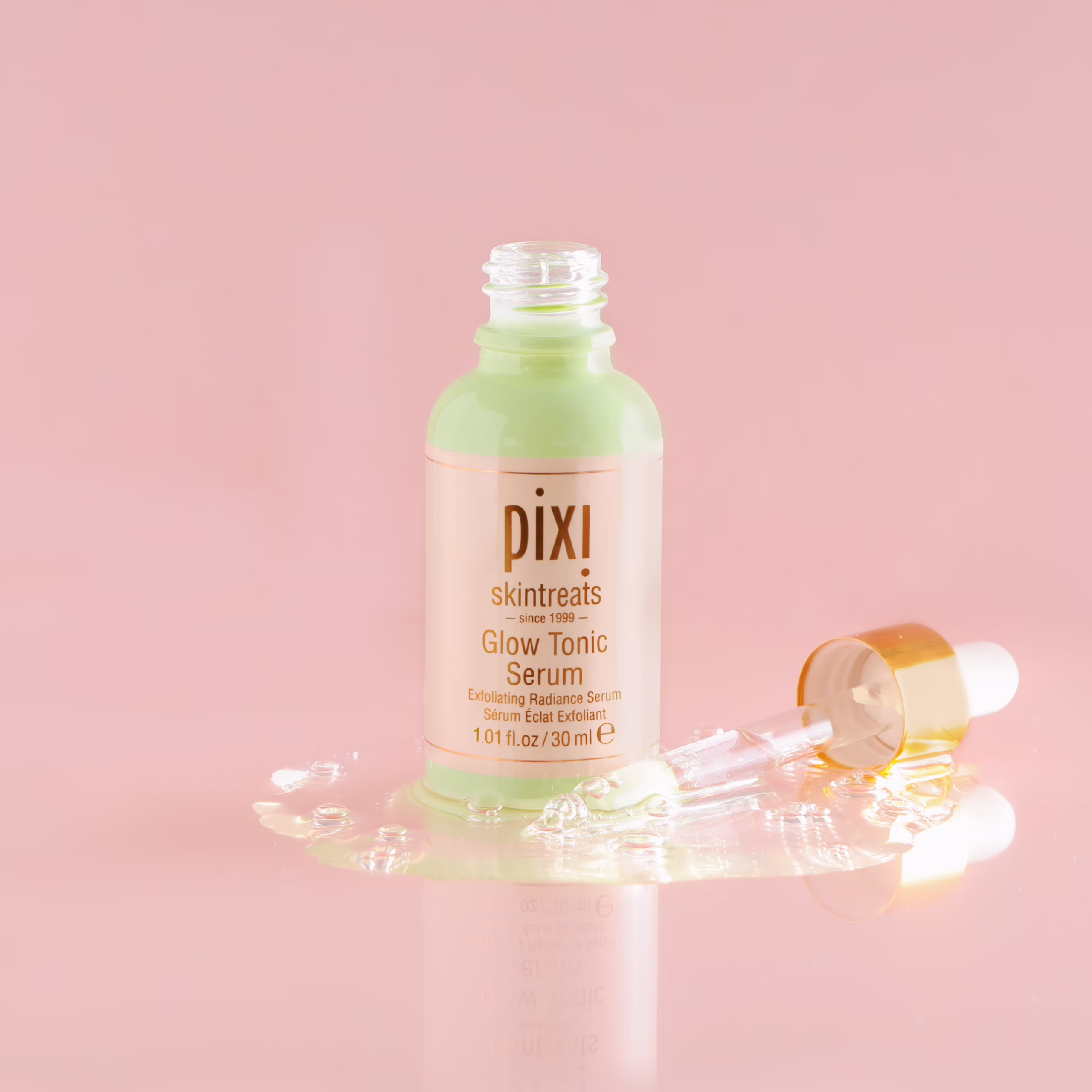 As the product designed to hydrate and nourish your skin in our expanded line of Glow Tonic products, Pixi Beauty Glow Tonic Serum is the third step in a brilliant skincare routine. This lightweight serum gently exfoliates, hydrates and nourishes. The glycolic acid and aloe vera enriched formula infuses your skin with beneficial nutrients while setting the stage for the final phase of your daily routine. A little serum goes a long way, with only a few drops of the powerful formula needed to achieve a balanced and radiant complexion.